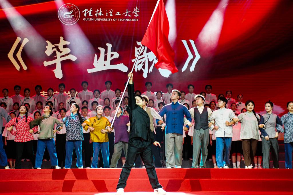9月29日晚,桂林理工大学“山河壮歌 挺膺有我”——纪念中国人民抗日战争暨世界反法西斯战争胜利80周年主题思政歌会在雁山校区新体育馆举行。校领导韦学敏、王磊、罗盛锋、唐壮东出席活动。学校相关职能部门、二级学院负责人和2025级新生代表共3500余人现场观看演出。