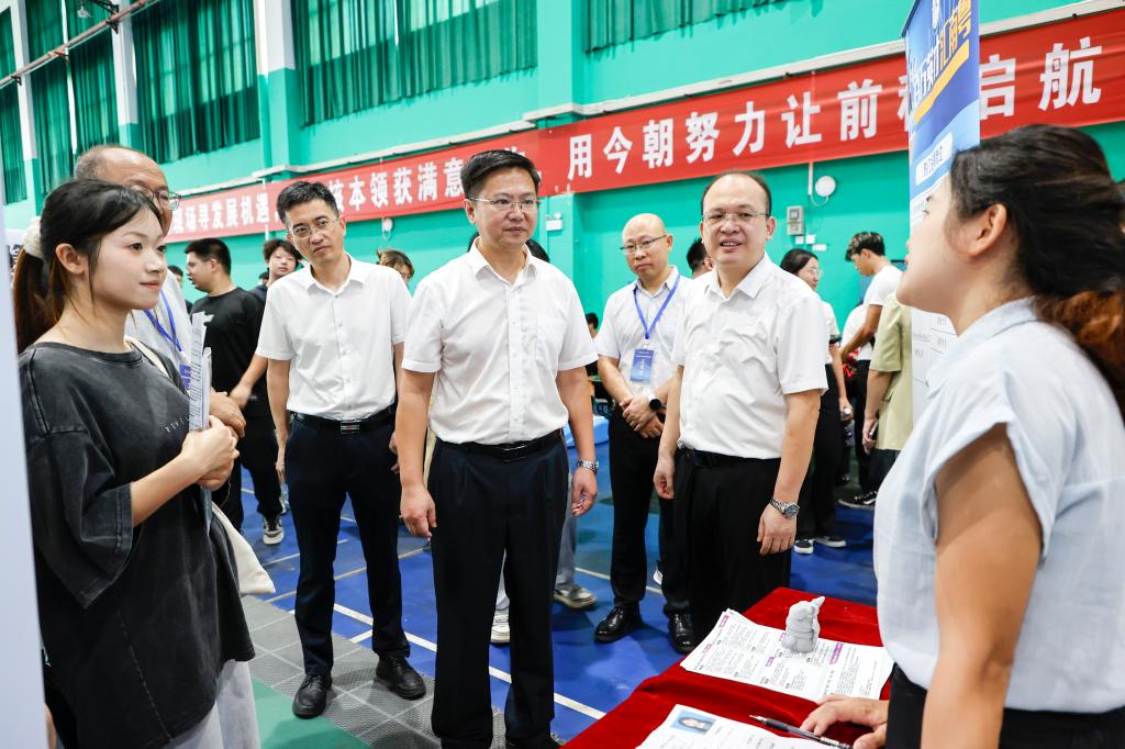 学校党委书记农毅,党委常委、副校长王磊、唐壮东深入双选会现场,与地方人社局、用人单位代表洽谈交流,围绕区域产业发展趋势和人才需求变化,探讨高校人才培养与产业发展的有机衔接。校领导还亲切慰问求职毕业生,鼓励他们把握机遇、树立信心,早日实现人生理想与职业目标。