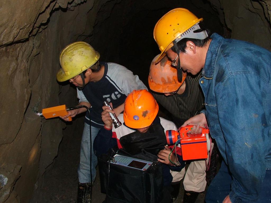 指导研究生在桂北某铅锌矿井下运用X荧光光谱仪测量矿化岩石