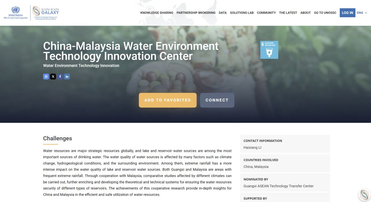 学校“中国-马来西亚水环境技术创新中心”入选联合国可持续发展优秀实践案例