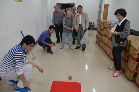 老同志参加门球进球游戏