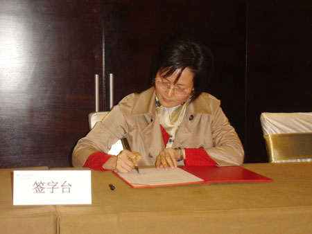 陈贵英副校长与邵逸夫基金主席邵方逸华女士交换赠款协议书