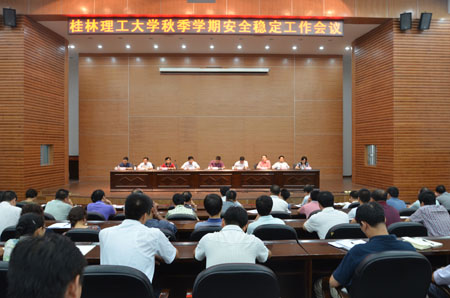 为切实做好新学期开学及党的十八大前后维护学校安全稳定的各项工作,构建平安、和谐校园,9月7日下午,学校在图书馆报告厅召开维护校园安全稳定工作会议。学校校长张学洪,党委副书记、纪委书记赵君,党委副书记王赣华,副校长肖岳峰、陈学军、吴志强、周国清、陈贵英,正厅级调研员张鹏出席会议,学校全体中层干部参加会议。会议由党委副书记、纪委书记赵君主持。 会上,肖岳峰副校长就我校2012年上半年校园安全稳定工作作了全面总结,并对为学校安全稳定工作付出辛勤劳动的老师们表示衷心的感谢。随后,他传达了全区高校安全稳定工作会议的有关会议精神,并对开学伊始学校即将开展的安全稳定工作进行部署。他在讲话中指出要进一步加强对学生的思想引导和心理健康教育,常规安全教育要狠抓责任落实、措施落实,从源头预防不稳定因素。 最后,张学洪校长就校园安全稳定作重要讲话。他强调,稳定压倒一切,责任重于泰山,校园安全稳定工作事关重大,一定要以持续稳定的良好局面迎接党的十八大胜利召开。他指出,一要高度重视,各单位要认真抓好校园安全稳定工作,确保校园平安、和谐;二是要及时排查和化解矛盾,各部门通力协作、多管齐下,将各类不稳定不安全的事端处置在萌芽状态;三是要进一步加强师生员工的思想政治工作,把握师生思想动态,把学生老师的爱国热情引导到更好的工作和学习上来;四是要做好责任的落实,做到人人有责、个个尽责,进一步强化各部门、各二级学院主要负责人维稳工作负责制和问责制。 张学洪校长还就本学期的教学工作、科研工作、人才队伍建设、职能部门考核和其他日常管理和服务工作做了详细地部署和安排。