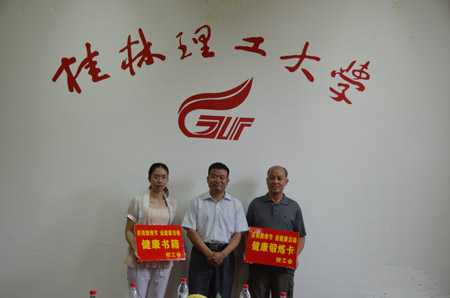 9月5日下午,在第28个教师节来临之际,学校在第二会议室举行为教授们送上健康锻炼卡和与教师职业相关联的健康书籍活动,祝福他们身体健康、工作顺利、阖家幸福。学校党委副书记、纪委书记、工会主席赵君出席送健康活动,校工会和部分教授代表参加此次活动。 校工会副主席陆平介绍了学校职工全民健身和各项活动开展情况。教授代表们对学校全民健身及各项文体活动开展情况提出了具体的意见与建议。 赵君副书记在与教授代表座谈时介绍了雁山校区教职工住房建设情况,并以“快乐工作、健康生活、幸福人生”为切入点探讨了健康对家庭、工作的重要性。他说随着近年来社会和我校的快速发展,广大教职工在物质生活不断丰富的同时身心压力也不断增大,有的甚至存在焦虑、郁闷、心理负担过重等现象。因此,他希望各位老师要积极转变观念、正确认识自我、找准人生的位置、增强身心健康锻炼、学会自我缓释,以积极的心态快乐工作、健康生活,创造幸福人生。