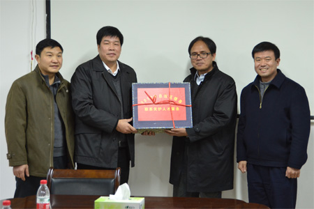 受自治区党委常委、统战部部长范晓莉委托,桂林市委常委、统战部部长叶兆泉一行于1月16日下午专程来我校看望并慰问自治区领导联系关护人才——我校引进“杰出人才”、博士生导师、土木与建筑工程学院院长韦昌富研究员,并在学校土木与建筑工程学院会议室举行了慰问仪式。学校党委副书记、纪委书记赵君,党办、校办主任莫坷,宣传部、统战部部长秦宏毅等相关领导出席了慰问仪式。 叶兆泉部长向韦昌富研究员送上了鲜花和慰问品,并表达了新春的问候和美好的祝福。他说:受自治区党委常委、统战部部长范晓莉委托,在此新春佳节来临之际,特来桂林理工大学,向韦昌富研究员表达节日的问候,希望他在今后工作中再创佳绩,为地方建设和发展做出更大的贡献;同时衷心感谢桂林理工大学对统战工作的重视和支持、对人才的尊重和关护。韦昌富研究员诚挚感谢各级党委和领导对他的关心和爱护,表示将再接再厉,为广西的科技事业贡献自己的全部智慧和力量。 赵君副书记代表学校党委和行政,向叶兆泉部长一行前来慰问表示衷心的感谢!同时表示:学校将一如既往地重视和支持统战工作,将继续深入凝聚人心,团结力量,尊重人才,重视科教,充分发挥人才和科技优势,为服务广西新发展,实现富民强桂新跨越做出新的、更大的贡献。最后,赵君副书记表达了诚挚的新春祝福。