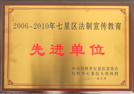 我校荣获桂林市七星区2006-2010年法制宣传教育先进单位荣誉称号