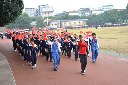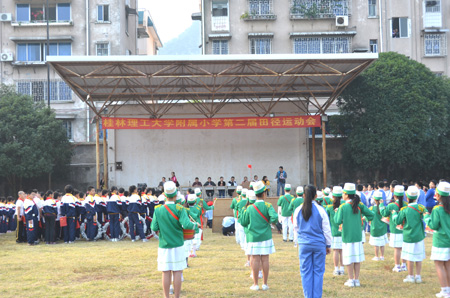 为了增强学生体魄,提高学生体质,丰富学生课余生活。11月4日,学校附属小学第二届田径运动会伴随着习习秋风,在雄壮的《运动员进行曲》中正式拉开了序幕。 本届运动会设立了60米、100米、200米、跳高、跳远、垒球等多个比赛项目。运动场上,运动员们本着“友谊第一、比赛第二”的精神努力拼搏,奋力争先,不仅锻炼和展示了自已的身体素质,更体现了“更快、更高、更强”的体育精神;观众席上,拉拉队和观众们的热情也毫不逊色,有的呐喊助威,有的接人送水,每一位同学都努力着,奉献着,场面气氛热烈而和谐,充分体现了“我运动、我健康、我快乐”的运动理念。 在全体师生的共同努力和积极参与下,历经一天的运动会取得了圆满的成功。通过比赛,班级的凝聚力得到了加强,校园文化得到了提升。