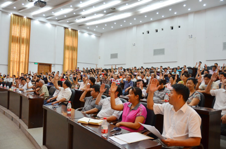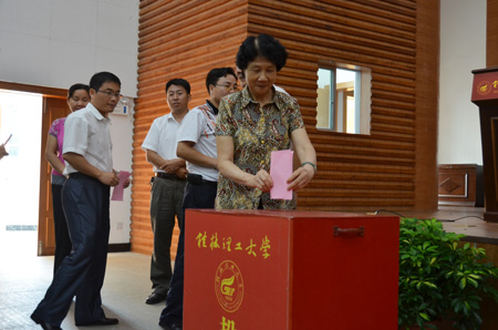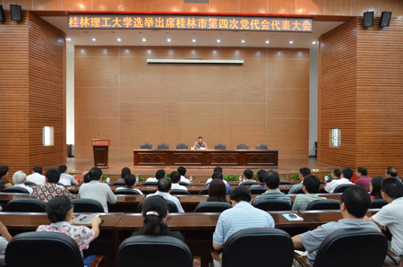 7月9日下午,我校出席桂林市第四次党代会代表选举大会在图书馆报告厅举行。学校第一次党代会全体代表参加大会,学校党委副书记、校长张学洪主持会议。 根据中共桂林市委员会第四次党员代表大会工作安排和程序,大会通过了选举办法和总监票人、监票人名单。经139名代表投票表决,赵君同志以高票当选为我校出席中共桂林市第四次党代会代表。 据《桂林晚报》消息,中共桂林市第四次代表大会将于今年8月在桂林召开。大会的主要任务是,深入贯彻党的第十七届五中全会精神,全面总结中共桂林市第三次党代会以来的工作,讨论确定桂林市今后五年经济社会发展的奋斗目标,以及实现这些目标所应采取的方针、政策,科学规划未来五年经济建设、政治建设、文化建设、社会建设、生态文明建设和党的建设;选举产生中国共产党桂林市第四届委员会和第四届纪律检查委员会;动员全市共产党员和各族人民,深入贯彻落实科学发展观,坚定信念,振奋精神,创先争优,为实现“十二五”规划,促进经济平稳较快发展和社会和谐稳定而奋斗。