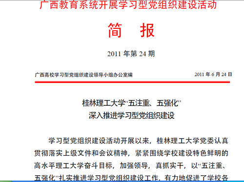 广西教育系统开展学习型党组织建设活动简报2011年第24期