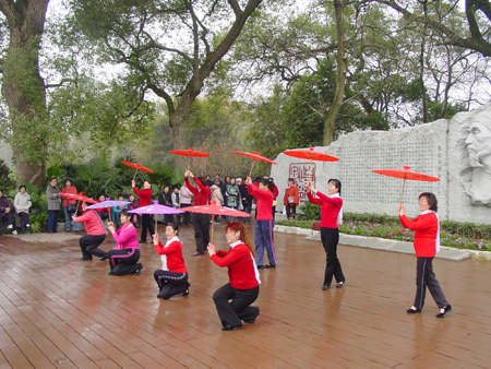 “丢,丢,丢手绢,轻轻地放在小朋友的后面,大家不要告诉她,快点快点捉住她……”,一场儿童游戏《丢手绢》将老同志带回到快乐的童年;《伞舞》散发了离退休女同胞美丽的风采;一曲优雅的葫芦丝乐曲飘荡在訾洲公园的上空。 “三八”国际劳动妇女节离退休女同胞在訾洲公园隆重聚会,增加了老同志之间友谊与联系,促进了老同志们的身心健康,激活了老同志们的青春激情。