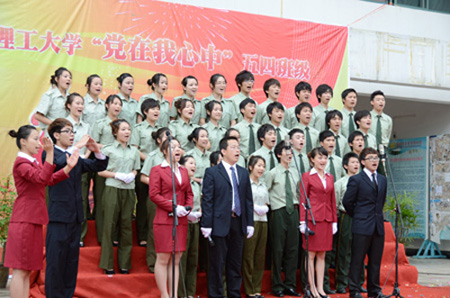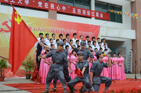 宜将青春献中华,莫让韶光付东流;红歌声声唱不尽,情深意长颂党恩。为隆重纪念“五四”运动九十二周年,喜迎中国共产党诞辰九十周年,由学工部(处)、校团委主办的 “党在我心中”五四班级红歌会于5月7日上午在雁山校区三栋广场隆重开赛。学校党委副书记王赣华观看了红歌会并作重要讲话,党委组织部,党委宣传部、统战部,党委学工部,校团委负责人及各学院副书记或副院长观看了红歌比赛并担任评委。 校党委副书记王赣华在活动致辞中讲到:红歌会活动自开展以来,老师和同学们始终以极大的热情参与其中,在校园内掀起了“红歌热”。同学们用艺术的形式表达了对“五四精神”的景仰,展示了爱党爱国情感、抒发了爱党爱国热情,他希望在红歌的感召下,同学们把爱党、爱国之情转化为励志强国之举,坚定跟党走中国特色社会主义道路的理想信念,热爱生活,勤奋学习,扎实工作,以实际行动为中国共产党建党九十周年献礼。 经过各学院初赛的严格筛选,共有十四个班级凭借雄厚的实力代表各学院入围本次比赛。参赛各班以洪亮的歌声,整齐、统一的着装,良好的精神面貌和有序的入场在比赛中打动了在场的评委和观众,赢得了场下观众的阵阵掌声。各学院辅导员老师或班导师也积极参与红歌比赛,极大地鼓舞了本学院或班级学生的比赛热情。 经过两个多小时的激烈角逐,艺术学院凭借气势磅礴的开场白、新颖独特的伴奏、整齐而充满创意的动作、精彩的彩带舞伴舞、声情并茂演唱的《保卫黄河》和《国家》赢得了全场的最高分并荣获本届红歌会的一等奖。管理学院演唱的《南泥湾》、《我的中国心》和材料科学与工程学院演唱的《祖国不会忘记》、《歌唱祖国》也以其洪亮动听的歌声和创意的伴舞分列总成绩的第二、第三名并荣获红歌会二等奖。信息科学与工程学院、理学院、应用技术学院荣获三等奖。此外,外国语学院、土木与建筑工程学院等八个学院获得优秀奖。 一首红歌一面旗,一支红曲一把号。本次红歌会上经典的红歌得到了精彩的演绎和再现,广大师生的心灵也接受了一次党的革命传统和 “五四”的精神情怀的洗礼。正如红歌会上同学们的豪迈决心:家事国事天下事,我们用青春去奉献;风声雨声读书声,我们用热血去传承。此次红歌赛对弘扬爱党、爱国情怀,促进传承与创新的校园文化建设必将起到积极的作用。