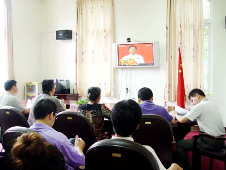 6月23日上午,教育部团中央全国高校学生“永远跟党走”主题暑期社会实践活动启动仪式在北京大学举行。我校党委高度重视,并根据教育部和教育厅统一部署认真组织教师和学生代表集中收看启动仪式电视直播。学校校长张学洪,党委副书记、纪委书记赵君,宣传部、学工部(处)、校团委、博文管理学院相关负责人和学生代表共同观看了直播。 伴随着雄壮的国歌声,观看直播现场全体起立,现场气氛庄严而热烈。启动仪式由教育部部长、党组书记袁贵仁主持。教育部副部长、党组副书记杜玉波,共青团中央书记处书记卢雍政,北京大学党委书记闵维方,清华大学学生张思培先后在会上发言。会上,中央政治局常委、国务委员刘延东作了重要讲话,对今年全国高校学生“永远跟党走”主题暑假社会实践活动提出了具体的要求和希望,她希望全国高校学生要积极行动起来,走向社会,走向农村,向实践学习、向人民群众学习,努力成长为堪当国家建设重任的栋梁之才。最后,国务委员刘延东向北京大学研究生西部支助学生代表授旗。 启动仪式结束后,张学洪校长就我校学生暑假社会实践活动进行了安排,要求校团委、学工处(部)要严格按照自治区教育厅的具体部署,制定好学校 “永远跟党走”主题暑假社会实践活动的实施方案,认真组织学生开展好此项工作。