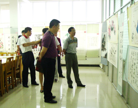 为了纪念建党90周年,6月21日,由学校离退休党委、离退休工作处联合举办的离退休教职工书画摄影篆刻作品展在离退处活动室隆重开展。学校党委书记赵艳林,校长张学洪,党委副书记、纪委书记赵君,党委副书记王赣华,副校长肖岳峰、 陈学军等在党(校)办、组织部、人事处、宣传部、工会、离退处相关负责人的陪同下分别参观了展览。 本次书画摄影篆刻作品展共展出书画、篆刻及摄影等作品共60余幅。书法作品或古穆凝重、圆润含蓄,或恣肆畅达、活泼飘逸,行草篆隶应有尽有;绘画作品或清丽华美、秀颖温醇,或写实或写意。作品以讴歌党、讴歌改革开放、讴歌社会主义和谐、赞美高校发展和祖国大好河山为主题,每一幅作品都是离退休老同志近期创作的精品,具有较高的艺术水平。学校97岁高龄的老红军原学校党委书记柳林同志挥毫创作了多幅作品并亲临观看展览。 赵艳林书记在参观展览的过程中指出,这次书画摄影篆刻作品展充分展示了我校离退休老同志热爱党、热爱祖国的深厚感情与高尚情怀。同时,也是学校精神文明建设成果的充分展现。