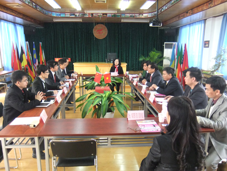12月21日上午,越南河内旅游学院院长丁文当(DINH VAN DANG)率团到我校访问。学校副校长陈学军教授在屏风校区热情接待了来访客人。 座谈会上,陈学军副校长代表学校对代表团表示热烈欢迎,并介绍了我校的基本情况。宾主双方就师生互换、科学研究等方面进行了交流。会后,越南代表团一行参观了我校屏风校区。