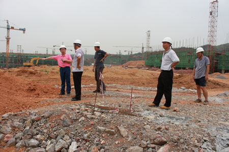 7月13日上午,张学洪校长到扶绥校区检查指导工作,肖岳峰副校长和扶绥校区建设指挥部副指挥长罗雪平、劳景寮、李辉等陪同张校长查看了扶绥校区建设情况。 肖岳峰副校长向张校长介绍了扶绥校区目前的建设情况,陪同张校长查看了一期工程三个标段的工程进展情况。张校长肯定了指挥部前一阶段的工作,希望下一步继续努力,做好管理,进度较慢的主体工程要加大管理力度,采取措施,加快进度,保证今年九月份新生顺利入学。