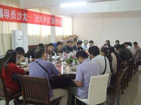 10月13日下午,学校第九期辅导员沙龙——“创先争优”专题沙龙在雁山校区辅导员之家举行。学校党委副书记、创先争优活动领导小组副组长王赣华与学工处、校团委负责人以及各学院辅导员代表参加了此次专题沙龙。 会上,辅导员代表结合学校开展的“创先争优”活动和自身学习工作体会,就如何立足岗位、争当先进、争创佳绩等畅所欲言。大家纷纷表示,要将“创先争优”活动作为自己增强党性修养,提高思想素质和业务能力的重要契机,按照学校要求积极、认真参加各项活动,加强学习与思考,服务学生,做好雁山校区各项学生工作。 王赣华副书记肯定了辅导员在“创先争优”活动中的心得体会和工作设想,指出辅导员群体直接面向学生,既是学校管理者又是学生服务者,既是学生的人生导师又是知心朋友,岗位职责赋予了辅导员在思想政治素质和工作业务能力等方面要“政治强、业务精、纪律严、作风正”,因此辅导员要自觉立足岗位,做好角色定位,结合“创先争优”活动,“爱学工之岗,敬桂工之业”,争当先进。同时王副书记还对辅导员提出了注重理论素养提高、加强间接经验的学习、深化个人工作总结、注重实践探索等四个方面的希望。 据悉,根据学校“创先争优”活动总体安排,结合雁山校区学生工作实际,学工处将在近期陆续开展针对辅导员的专题活动,包括理论学习日、学生工作案例分析会、学风检查等,不断提升辅导员自身能力与素养,推进“创先争优”活动深入开展。