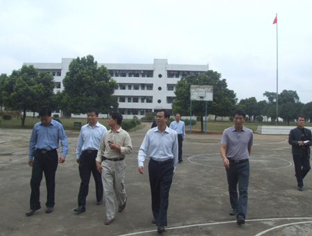 赵艳林书记(中)、赵君副书记(左二)参观金锣初中校园