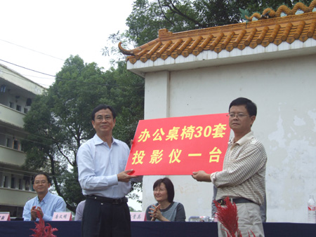 赵艳林书记代表我校向金锣初中捐赠办公及教学设备