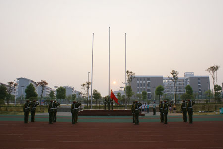 9月20日早晨,学校在雁山校区举行升国旗仪式。这是2010级新生到校后首次参加的升旗仪式。学校团委、学工处等部门负责人,各学院辅导员及军训教官和雁山校区各年级同学共同参加了升旗仪式。 2010级新生们着装统一、列队整齐,展现了我校新学子的良好精神面貌。7时整,师生们怀着激动的心情,在雄壮的国歌声中,凝望着鲜艳的五星红旗伴随着朝阳冉冉升起。全体师生向国旗行注目礼,祝愿伟大的祖国繁荣昌盛。校团委副书记白凌婷老师首先对所有加入桂林理工大学的新生表示热烈欢迎,接着她对新同学提出了以下希望:第一、尽快做好身份的转换,尽快熟悉、适应大学生活;第二、制定明确的目标,做好规划,充实自我,完善自我;第三、要懂得明理感恩。最后,希望所有同学能够志存高远,脚踏实地,充满热情和活力地面对每一天。升旗仪式在同学们热烈的掌声中顺利结束。 升国旗仪式是雁山校区日常学生管理中的一项常规工作,有利于培养同学们的爱国情怀、爱校风气和规律的生活学习习惯。此次升旗仪式对新生尽快融入桂林理工大学大家庭、培养爱国爱校情操起到了良好的促进作用。
