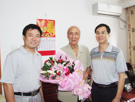 9月20日,学校党委书记赵艳林,党委副书记、纪委书记赵君专程前往我校离休老干部柳林家中,祝贺柳老96岁寿辰。校办、组织部、离退处等部门负责人陪同慰问。 在柳老家中,领导们亲手为老人送上了生日蛋糕、鲜花和慰问金,并代表学校全体教职工衷心祝贺柳老生日快乐。柳老握住大家的手十分高兴,并一再表示感谢。慰问中,赵艳林书记、赵君副书记详细询问了柳老的日常生活和身体情况,当得知柳老虽然年事已高,但仍然每天坚持看书学习关心学校发展时,大家感到十分欣慰,并再次祝愿柳老身体安康、长寿幸福、快乐每一天。