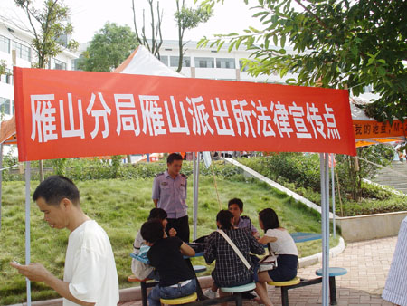 (五)普法宣传、共建平安校园: 今年与往年迎新相比最大的一个亮点是迎新期间学校邀请雁山派出所在三栋广场专门设置了法律宣传点,向新生及其家长派发安全防范手册及治安管理处罚法手册。针对往年的新生报到期间盗窃案与诈骗案件等易于发生的特点,重点加强了对新生防盗防骗意识的教育,同时特别强调要注意加强新生的人生安全保护。此外,校保卫处也加强了对进入校园车辆的引导和管理,确保迎新工作顺利开展。
