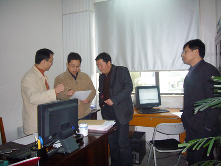 图为成高招生录取期间吴副校长(左二)到招生现场视察、指导工作