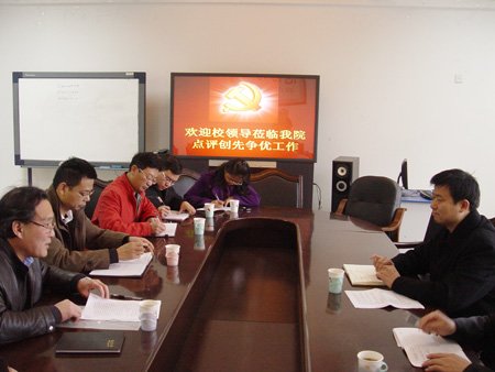 张学洪校长在听取各学院的汇报后对各学院的成绩表示肯定并强调,要围绕学院的中心工作、围绕“十二五”规划深入开展创先争优活动;要抓好领导班子和师资队伍建设,把队伍活力转化为创先争优的动力;要明确分工,分类指导,抓好载体,全面争创;要加强大学生的思想政治教育与引导,积极促进就业工作;要抓好研究生教育,把研究生的思想教育与学术水平、学术规范有机结合起来;要提升教学质量,加强科研实力,把学科发展与争先创优活动紧密结合起来。要积极吸纳高学历、高职称人员向党组织靠拢,要围绕实验室建设、博士点建设开展工作;积极开展“十二五”共规划在科研项目、校企业合作等方面的探索,促进学校服务社会的实力。
