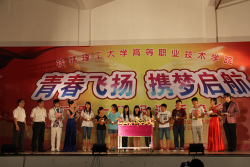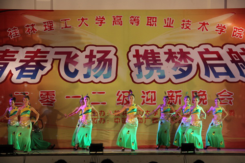 携梦启航催奋进,飞扬青春耀空港。9月28日晚,空港校区体育馆内人潮涌动、掌声不断,由我校高职学院团委主办的“青春飞扬·携梦启航”2012年迎新文艺晚会隆重举行。副校长刘宝臣及学院有关部门负责人出席晚会。该院近3400名2012级新生一同观看了精彩的演出。 晚会现场张灯结彩,热闹非凡。舞台灯光动感十足,现场音乐激情澎湃,呈现出了一派欢快、喜庆的景象。歌舞《让我们舞起来》结合绚丽的民族舞姿和美妙的女声歌唱,仿佛燃起现场观众的梦想之火,在一片掌声雷动的欢呼声中拉开了晚会的序幕;街舞《灵动舞步》用自由灵动的舞姿张扬青春个性,展现当代大学生的激情和活力;相声《你我他》取材于真实的校园生活,贴近校园文化,把发生在身边的生活故事用艺术形式展现在舞台上,引起了在场同学的共鸣;轮滑表演《花式轮滑》用轻盈的动作带给现场观众一种飘逸的美感,表演者们动作敏捷、技巧娴熟,他们用热情感染着台下的每一位观众;民族舞蹈《碧波孔雀》用柔美的傣族舞姿展现优雅美感,带给观众美的享受。由青年教师表演的群舞《幻境百老汇》用翩翩舞姿彰显青春朝气,他们仿佛为观众搭建了一座梦想的舞台;分别来自学校国际教育学院的非洲马达加斯加的米那同学和来自学校艺术学院的六名同学也为现场观众带来了精彩的表演。 晚会期间,副校长刘宝臣、该院党委常务副书记梁冬松为晚会当天过生日的十位同学送上了生日礼物和祝福。晚会现场通过微博平台与观众互动,让每一个学生通过微博在第一时间关注并参与到晚会活动中去,分享自己的感受,说出自己的心声,取得了良好的互动效果。