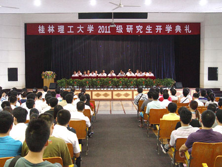 9月17日上午,学校在南校区礼堂隆重举行2011级研究生开学典礼。学校副校长吴志强教授出席典礼,研究生处、学工处、团委和各研究生培养单位负责人,研究生辅导员,研究生教学秘书及2011级研究生参加开学典礼。典礼由研究生处处长程道品主持。 吴志强副校长在会上作了热情洋溢的讲话。他简要介绍了学校的发展历程、教学科研、研究生培养等情况,描绘了学校发展建设的美好蓝图。 吴志强副校长对新同学寄予殷切希望:一是要明确定位、激发兴趣,力争成为科技创新的生力军;二是要创新思维、夯实基础,不断培育创新能力和创新精神;三是要求真务实、崇尚科学,坚守良好的学术道德修养。要大力弘扬“艰苦创业、敬业奉献、团结协作、开拓创新”的桂工精神,珍惜时光,明确目标,勤奋学习,刻苦钻研,为实现自己的人生理想奠定一个坚实的基础! 随后,管理学院院长、MBA管理中心主任周永生教授介绍了学校MBA的教育与发展。研究生导师李建平教授作导师代表发言,希望研究生新同学明确自己的目标与定位,积极参加社会实践,学有所成。2010级研究生、校研究生会副主席华向理代表在校生与2011级新生分享了研究生学习生活的经历与感受。2011级研究生陆妍玲、2011级MBA学员李舜国分别代表新生发言,表达了要珍惜学校良好的学习环境和氛围,努力学习,成为优秀的研究生,不辜负学校培养和教育的决心和信念。 最后,2011级全体新生庄严宣誓,研究生开学典礼圆满结束。