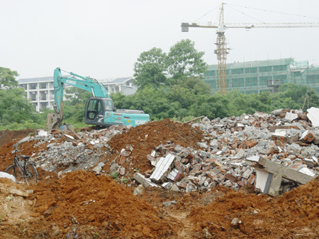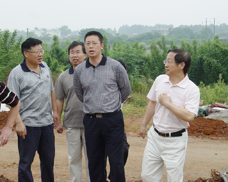 张学洪校长(右二)一行实地考察教职工住宅建设项目围墙缺口修建情况