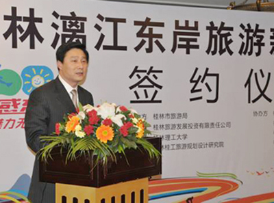 日前,我校与桂林旅游发展投资有限公司在桂林大瀑布饭店隆重举行“桂林漓江东岸旅游新区区域规划”签约仪式。学校党委副书记王赣华出席仪式并讲话。 签约仪式现场,我校旅游学院院长程道品教授与桂林旅游发展投资有限公司董事长何小鹏签署了《桂林漓江东岸旅游新区区域规划》合作协议,这也标志着该项目正式启动。 此规划是充分抓住国务院批准桂林为国家旅游综合改革试验区的有利契机,实现桂林旅游产业升级换代,推动科学发展的重要内容,对桂林旅游行业的发展将产生深远影响。我校将进一步整合科研资源,充分发挥旅游专业科技实力,积极组织精干力量全力以赴完成规划的编制工作,为桂林旅游产业发展做出积极贡献。