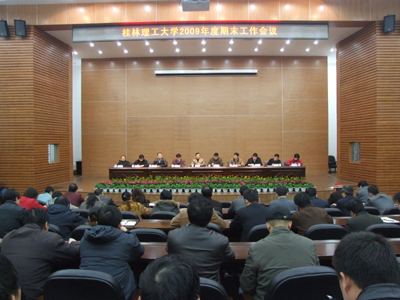 1月22日下午,学校在图书馆报告厅召开期末工作会议。学校领导和党委委员赵艳林、张学洪、赵君、王赣华、肖岳峰、肖明贵、陈学军、吴志强、华桂林、陈贵英出席会议并在主席台就座。会议由党委副书记、纪委书记赵君主持,全校全体中层干部参加了会议。 会上,副校长肖岳峰对寒假期间维护学校安全稳定工作进行了部署。他要求各单位、各部门要高度重视寒假期间学校安全稳定工作,切实加强假期校园的安全管理。一是要高度重视做好防盗、防火、出行等各方面的安全工作,对安全隐患要及时排查整改;二是要严格执行值班登记和巡查制度,重点区域要加强巡逻、强化防范;三是要认真做好假期校园水电供应等后勤保障工作;四是要认真落实甲型H1N1流感防控工作,采取有力措施,确保假期校园安全稳定。 校长、党委副书记张学洪代表学校党委、行政回顾了学校2009年取得的主要成绩,总结了取得成绩的主要经验,实事求是地指出了学校建设发展中存在的问题和不足。并针对存在的问题和不足,围绕如何更好地贯彻落实学校第一次党代会精神,从教学、科研、学科建设、人才队伍建设、财务管理、基本建设、学生工作、校区功能布局调整和雁山校区管理等方面就如何做好学校今年寒假期间及2010年学校有关工作进行了认真部署安排,张校长要求,各单位、各部门要利用假期认真谋划做好2010年的有关工作,要进一步增强忧患和机遇意识,以脚踏实地、奋发有为和改革创新的精神状态,紧紧围绕学校第一次党代会提出的工作目标和主要任务,认真谋划、全力推进2010年各项工作开展,把学校各项事业不断推向前进。 党委书记赵艳林在会上代表学校党委、行政对学校广大教职员工一年来为学校的建设发展所付出的辛勤劳动和无私奉献表示衷心感谢,向学校全体师生员工致以新年的良好祝福。他强调指出,2010年是学校更名大学后全面推进学校建设发展的开局之年,也是全面落实学校第一次党代会精神的第一年,学校改革发展任务繁重、全体干部教师责任重大,我们要紧紧围绕学校第一次党代会提出建设特色鲜明的高水平理工大学的目标要求,全面贯彻落实第一次党代会提出的目标任务。一是要承前启后,认真谋划,充满信心地拉开桂林理工大学新的发展序幕;二是要明确目标,扎实工作,努力做好张校长代表学校部署的各项工作任务;三是要加强领导,明确责任,确保今年各项目标任务的顺利完成。赵艳林书记指出,学校中层领导干部都肩负着推进学校和本单位、本部门发展的重任,是教职工的领头雁,是推动各项工作的组织者、领导者和协调者,大家务必要做到工作到位、责任到位,组织广大教职员工全力推进学校全年目标任务的落实,为建设特色鲜明的高水平理工大学做出应有的贡献。