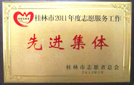 我校青年志愿者协会荣获“桂林市2011年度志愿服务工作先进集体”荣誉称号