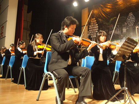 11月18日晚,由广西区教育厅组织的广西艺术学院交响乐团 “2010年高雅艺术进校园活动”专场音乐会在我校屏风校区体育馆三楼举行。学校党委副书记王赣华、副校长吴志强出席晚会,宣传部、学工处、校团委等部门负责人和全校千余名师生一起观看了当晚的演出。