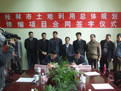 4月3日上午,我校与桂林市签订了土地利用总体规划修编项目合同,将负责桂林市第二轮土地利用总体规划修编工作。合同签字仪式在我校第二会议室举行。出席签字仪式的有我校党委书记黎志逘、校长赵艳林、党委副书记张学洪、副校长肖明贵,桂林市副市长黄俊华,桂林市国土资源局局长何年养等。赵艳林校长、黄俊华副市长分别代表学校和桂林市在合同上签字。 张学洪副书记在会上讲话,他说,我校领导高度重视此项工作,措施到位。并表示,一定按质按量完成桂林市第二轮土地利用总体规划修编工作。黄俊华副市长对我校成功更名为桂林理工大学表示祝贺,对我校参与桂林市第二轮土地利用总体规划修编工作以及学校一直以来对桂林市经济建设的关心和支持表示感谢。