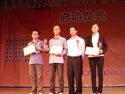 日前,在桂林市少年宫春天剧场隆重举行了桂林市创业文化节颁奖仪式暨桂林市十大杰出(优秀)青年企业家启动仪式,市委副书记束华、市人大常委会副主任汤杰、副市长巫家世等领导出席此次仪式。我校代表在桂林市首届大学生创业项目设计大赛上取得获得金奖1项,银奖2项,铜奖3项的好成绩。 为了激发和培养广大学生的创业意识、创业精神和实践能力,将创造能力转化为创业方案,本着“参赛为手段,普及为目的”的原则,学校积极鼓励学生自由组成优势团队,并加强对参赛学生的培训和指导,经过校内认真评选后,选拔了优秀作品推荐到组委会,取得了良好成绩。通过本次竞赛,在广大同学中进一步弘扬了创新精神、倡导了创业理念、促进了学习成果的转化,形成了良好的创业氛围。