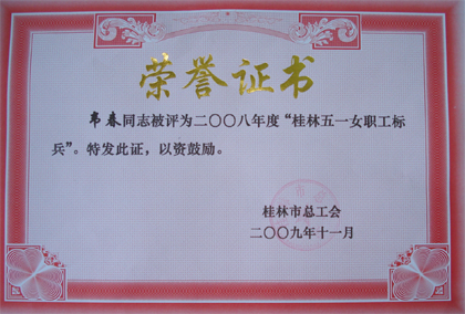 我校材料科学与工程学院院长韦春同志荣获“桂林五一女职工标兵”