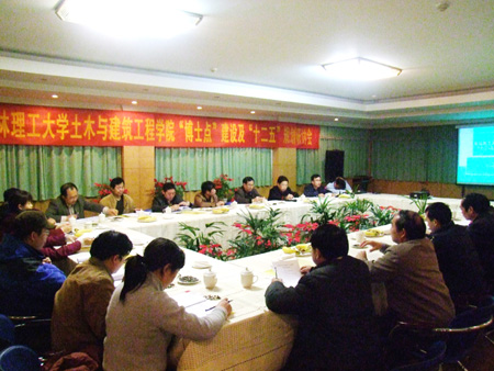 赵艳林书记充分肯定了土木与建筑工程学院在“十一五”期间教学科研、学科建设、人才队伍建设、实验室建设等方面所取得的成绩。同时,他就推动学院发展,大力推进“博士点”建设及“十二五”规划编制工作提出了五点希望:一要结合教学科研、学科建设、人才队伍建设等工作实际形成共识,增强学院发展的紧迫感和责任感;二要科学谋划好学院的发展方向,组织好团队,建设好平台,集中力量,为推动学院学科建设、科研工作做贡献;三要增强信心,瞄准前沿和当前广西特色发展的趋势,扎实推进学院各项工作;四要充分发挥创先争优的工作机制,调动教职工积极性,横跨专业学科,利用好广西重点实验室平台,多承担科研项目,多出成果。要切实把科研成果应用到教育教学实践环节当中,利用培养人才要支持学院的科研工作,把学院科研工作推向一个新的台阶。