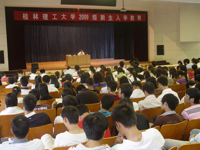 为了深入贯彻落实《中共中央国务院关于进一步加强和改进大学生思想政治教育的意见》精神,根据《桂林理工大学新生入学教育方案》,学校于9月27-30日分别在屏风校区和雁山校区举行新生入学教育系列报告会,对我校2009级本专科新生进行了系统的入学教育。 在系列报告会中,校长张学洪为新生介绍了学校的校史校情,并作了题为《大学三问》的专题报告;党委副书记、纪委书记赵君以《明确历史使命、勇担时代重任、做一名全面发展的大学生》为题,对全校新生进行了党的基本知识和大学生廉洁教育;党委副书记王赣华以加强校风学风建设为主要内容,作了题为《适应人生新阶段,实现人生新跨越》的专题报告;副校长肖岳峰重点围绕民族团结和反邪教警示教育作了题为《警惕“独流”,抵制邪教,做民族团结的忠诚维护者》的专题报告;副校长阮百尧以“大学生规划教育”为内容作了专题报告。 另外,学校还对新生进行了教学管理制度、安全防范、疾病防控与心理健康等教育,使他们对学校有了更深入的了解和认识,为他们顺利完成从高中生到大学生的角色转变,尽快适应大学生活,确立自己的发展目标和人生方向,更好的融入大学生活打下良好的基础。