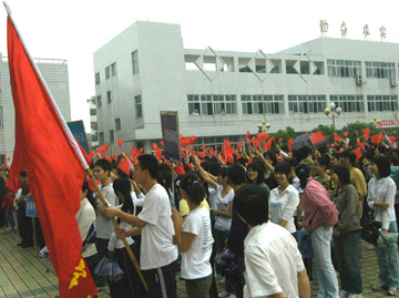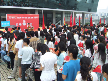 华桂林委员的讲话引起了启动仪式现场同学们的强烈反响,大家一起挥动手中五星红旗,为2008北京奥运加油喝彩。