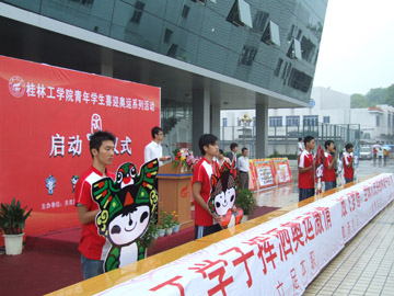 据悉,院团委和学生会除了举办以上“桂工学子签名祝福奥运”和“奥运知识图片展”活动之外,还举办“奥运精神英语征文比赛”、“人文奥运主题公园”、“喜迎奥运乒乓球赛”和“品味奥运艺术、演绎精彩人生”奥运知识竞赛等活动。