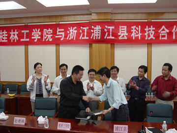 4月10日,来自长江三角洲地区的浦江县政府有关领导和10余家企业老总与我院的领导、专家们经过友好洽谈,共达成了9项合作意向。这个高校与地方政府、高校与企业、高校专家与企业家的双“联姻”,显示了我院在校企合作、科技服务上又迈出了新的步伐。 下午3点,我院与浙江浦江县科技洽谈会在教八楼会议室举行。学院党委书记黎志逘、院长赵艳林、党委副书记张学洪亲自接待了浦江县科技考察团。黎书记热情地致辞,对客人们为我们传送发达地区的经验表示欢迎,并希望双方通过洽谈找到合作的结合点。赵艳林院长向来宾们介绍了学院的基本情况、优势专业、科技实力,特别介绍了学院在为地方经济服务方面所做出的突出贡献。 浦江县考察团带队的副县长金时刚听了介绍后表示,他们就是为求才、求解决难题而来,桂林工学院一流的人才、众多的项目,让他们增强了合作的信心。他介绍了浦江县的历史、文化、特色、经济情况和产业发展目标及状况,还介绍本次参加考察的都是本地具有发展潜能的企业,他们在生产、发展中需要引进先进项目来解决遇到的难题。为此,他希望高校专家们的科研成果能在浦江生根开花,希望企业家和专家能合作成功。 我院材料与化学工程系、资源与环境工程系、电子与计算机系、土木工程系、管理学院、旅游学院分别介绍了本系(院)的学科优势、服务方向和科技成果。 参加考察的浦江县企业家有:怡通工贸董事长楼耕读、吴氏科技董事长吴兴桥、百川实业董事长张荣良、诚兴电子董事长李飞、亿源光电董事长于江仁、天杰胶业董事长周红伟、顺风工艺董事长陈丰山、瑞博水晶董事长朱筱洪、武士锁业技术副总朱国富、万赛磨擦技术副总张威武。他们也先后介绍了企业的生产项目、发展方向、需求对接项目,表示了寻求合作的意愿。 随后,考察人员有的到实验室参观考察,有的与专家们一对一地交流起来。专家们细致地介绍着自己的专利成果,一一解答企业家提出的问题,有的还把成果实物带到了现场,直接向企业家推荐。 经过热烈地对口洽谈,洽谈会当场形成了9个合作意向。赵艳林院长和金时刚副县长分别代表学院与浦江县政府签署了科技合作意向书、张学洪副书记和浦江县开发区黄重枝副主任签署了就业合作意向书,7个形成科技合作意向的项目专家也相继与企业家签署了合作意向书。 为了促进科研与生产相结合,推动科技成果产业化,增强学院为地方经济服务的能力,促进学院更快地发展,我院一直努力探索宽领域、多方面的校企合作新方式。与广西有色资源股份有限公司签署校企全面合作协议书,有效地构建了校企互利双赢的发展机制,而本次科技成果与发达地区企业直接对接,更是极大地推动了科技成果的转化,丰富了校企合作的方式,也必将有利于促进地方、企业、学校的共同发展。