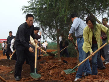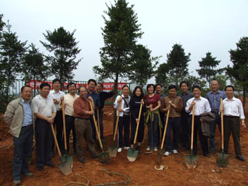 教学单位、职能部门负责人在自己亲手栽下的树前合影留念