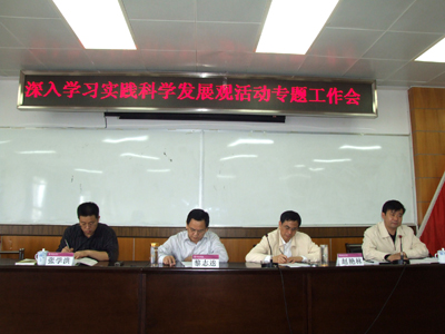 4月15日上午,学校在党校会议室召开深入学习实践科学发展观活动专题工作会议。学校党委副书记、校长、学习实践活动领导小组副组长赵艳林同志主持会议,学校党委书记、学习实践活动领导小组组长黎志逘同志,学校党委副书记、学习实践活动领导小组副组长张学洪同志,学校党委副书记、纪委书记、学习实践活动领导小组副组长赵君同志出席会议并在主席台就座,学习实践活动领导小组及办公室成员,各党总支、直属党支部、分党委书记,各单位(部门)学习实践活动领导小组办公室主任、各职能部门主要负责人参加了会议。 在会上,赵君副书记传达了全区高校深入学习实践科学发展观活动工作会议精神,材化系党总支书记胡祖生同志就材化系党总支开展学习实践活动作了典型发言。 黎志逘书记在会上发表了讲话,对学习实践活动前阶段工作进行了总结,并就推进学校学习实践活动深入健康开展作了工作部署。黎书记在讲话中指出,我校作为开展深入学习实践科学发展观活动第二批单位,在学习实践活动第一阶段工作中,严格按照自治区党委的有关部署安排,紧紧围绕学校中心工作,认真制定学习实践活动实施方案,确定了活动主题,按照“党员干部受教育,科学发展上水平,人民群众得实惠”的总体要求,紧密联系学校更名为“桂林理工大学”后如何发展和中央、自治区提出的“保增长、保民生、保稳定”的客观实际,突出实践特色,扎实有效推进,切实做到组织领导到位、谋划准备到位、工作方案到位、动员部署到位、学习培训到位、舆论宣传到位、督促检查到位,较好地完成了阶段性任务,取得了明显成效,学校学习实践活动开局良好,进展顺利,学习认真,成效显著。 全校党员干部一是进一步理清了工作思路,二是坚定了科学发展的信心,三是形成了办好理工大学的思想共识,增强了做好工作的紧迫感,四是进一步加强了党性锻炼和党性修养,进一步转变了工作作风。 就如何认真贯彻落实全区高校深入学习实践科学发展观活动工作会议精神,切实推进学校学习实践活动深入健康开展,黎志逘书记讲了以下几点意见:第一,要紧密联系学校实际、突出实践特色。要紧密联系桂林工学院更名为桂林理工大学后,如何推进桂林理工大学发展,怎样建设桂林理工大学这一实际,紧密联系如何提高教学质量、如何做好管理工作、如何加强师资队伍建设等工作实际,认真学习,认真思考,从自身做起,全身心投入到学校发展建设中来。第二,要更加密切联系当前的形势任务开展活动。要联系金融危机对经济社会发展与稳定的不利影响,按照中央提出的“保民生、保增长、保稳定”的要求,在抓好教学工作的同时,全力做好毕业生就业工作,全力抓好服务地方经济建设工作,全力抓好校园安全稳定工作。第三,学习实践活动要力戒形式主义,注重解决突出问题,务求取得实效;第四,要区别情况加强分类指导,切实加强活动的领导,注重典型引路;第五,要更加注意学习实践活动的重点对象。要重点抓好校、系院两级领导班子成员的学习实践活动,对于普通党员,主要是正面教育,就是认真学习中央规定的必读书目,积极参与提出科学发展建议和分析评议意见,立足本职模范地做好工作,在师生员工中起先锋模范作用。黎志逘书记还就做好学习实践活动学习调研阶段下一环节即调研环节的工作作了指示,要求各系、院和职能处室领导班子,要围绕本单位、本部门的工作实际,认真制定好调研题目,深入到师生员工中去,认真听取意见和建议,按照学校党委的部署,扎实开展好调研活动。 赵艳林校长作了总结讲话,要求与会同志要认真学习和体会黎书记的讲话精神,并贯彻落实到实际工作中去。赵校长指出,学习实践科学发展观活动意义重大、影响深远,对国家来讲,关系到国家的全面协调可持续发展,对我们学校来讲同样也关系到我们学校全面协调和可持续发展。这次学习实践活动非常突出的特点就是结合实际,推动工作,体现实效性。我们现在已经成功地更名为桂林理工大学,成功地被列入到博士点建设单位,我们的下一步工作,就是要按照黎书记讲的,要用科学的发展观作指导,要紧紧地围绕“如何办理工大学、如何办人民满意的理工大学”这一目标,来认真思考我们学校的下一步发展。只要我们从自己做起,从现在做起,从每件事情做起,只要大家都能够围绕着“建设人民满意的理工大学”这一目标,去认真思考,去扎实工作,我们这次学习实践科学发展观活动就能够真正取得实效,这也是我们这次开展学习实践活动的出发点和落脚点。最后,赵艳林校长表示,只要用科学发展观来统领我们的思想,统领我们的行动,在学校党委、行政的领导下,在大家的共同努力下,我们桂林理工大学的明天一定会更加美好。