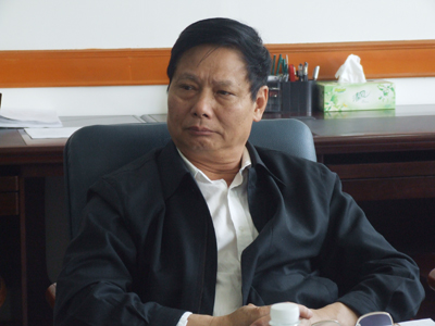 指导检查组同志听取工作汇报(左:梁启光,右:刘红)
