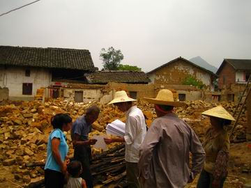 6月24日-6月27日,由土木系部分师生组成的桂林工学院赴鹿寨抗洪救灾建设服务队分别在雒容镇、鹿寨镇、中渡镇、英山社区完成了紧张的基础调研工作。 在灾区的这几天,队员们无时不被触目惊心的灾情深深地震撼,尤其是受灾最为严重的鹿寨镇俄滩屯,村民房屋倒塌近2/3,全屯200多户人家有160多户村民无家可归,村民们辛苦耕种的农作物,更是几乎完全被毁。目前,灾民们只能居住在临时帐篷内。村庄的重建工作既困难又紧张,尤其是部分受灾村镇是有着上千年历史的古镇,这就要求在重建规划中注意对水毁古建筑的修缮和保护,这些都为服务队的工作带来了巨大的挑战。 灾情就是命令,服务队的全体队员们都深知自己身上的重大责任,他们除了利用皮尺、测绘等工具和手段详细绘制现状图外,还深入受灾群众,详实了解群众受灾情况以及对灾后重建的要求。 6月25日,鹿寨县副县长(挂职)、我院土木系副主任冯兵同志和鹿寨县建设局孟副局长专程奔赴各个建设服务点看望队员们,并对队员们的工作成果进行了检验。冯副县长首先对大家几天来的辛勤工作表示了慰问,并对大家在工作中遇到的问题进行了解答与指导。他要求全体队员要坚持“以人为本”的思想,不怕辛苦,勇于奉献,将调研工作做实做细,想群众之所想,急群众之所急,又好又快地完成任务。 返校后,服务队的全体队员们将投入紧张的方案制定与图纸绘制工作。