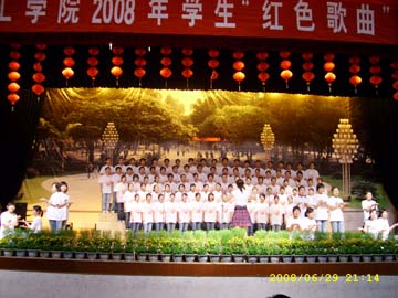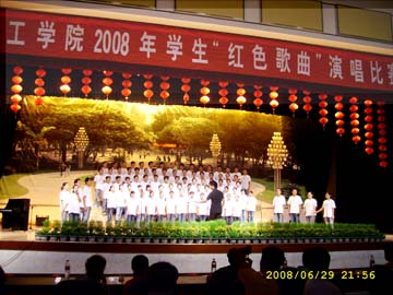 在党的生日到来之际,6月28日晚,我院在学院体育馆三楼礼堂举办了2008年学生“红色歌曲”演唱比赛。由 12个系(院)组成的合唱队高唱廉政歌曲,用歌声来庆祝建党87周年。学院党委副书记、纪委书记赵君光临了比赛现场并为比赛致辞。学院党委组织部部长陈贵英、党委宣传部部长于海平、学生工作部部长熊英、离退处处长陆娟娟等部门领导观看比赛并担任评委,担任比赛评委的还有:学院监察室黄日辉老师、党委组织部副部长李军朝、学生工作部副部长张雷、学院工会办公室主任陈艳霞、学生工作处心理咨询中心伍开明老师。各系(院)主管学生工作的副书记、老师和学生代表共同观看了比赛。 赵君副书记在比赛开始前致词,对活动的举行表示热烈的祝贺,他说,在建党87周年前夕,我们用演唱红色歌曲的方式来庆祝党的生日,具有特殊的意义。开展“红色歌曲”学生演唱活动,是新形势下加强学生廉洁教育的有效形式,也是推进校园廉政文化建设的重要内容。他希望以本次活动为契机,进一步激发全院同学们的爱国热情,增强同学们的廉洁意识、集体荣誉感和历史使命感,通过唱响廉政歌,使廉洁宣传教育得以深入,“崇廉倡廉”的校园氛围更加浓厚,进一步牢固树立科学发展观和正确的荣辱观,筑牢拒腐防变的思想道德防线,为我院和谐校园的构建提供良好的政治环境。 本次活动以弘扬优良传统 立志奋发成才为主题。参赛歌曲或深情表达了廉洁奉公的志向;或气势恢宏,以强大的感召力表达了同学们的拳拳爱国之心;或充分展现了在“5.12”汶川大地震中,中华民族面对困难挫折,高擎民族精神的火炬,奋发进取的顽强斗志和坚定信念,唱响了“一方有难、八方支援”的时代强音。整场比赛高潮迭起,使师生心灵受到一次又一次震撼。比赛中,同学们发挥积极性、主动性和创造性,挖掘潜力,在艺术处理上努力创新,采用了领唱、轮唱、合唱、齐唱、表演唱、朗诵等多种形式,并从指挥、服装、队形变化等方面进行了多样化表现,充分展现新时代大学生的精神风貌。 经过激烈的角逐,土木系学生充满激情的演唱,引起了在场全体师生的共鸣,受到观众的热烈欢迎,荣获比赛一等奖;成人教育学院、外语系获得二等奖;获得三等奖的是:博文管理学院、管理学院、应用技术学院。在热烈的掌声中,赵君副书记和其他评委们分别为获奖单位颁了奖。 本次比赛由中共桂林工学院纪律检查委员会、组织部、宣传部、学生工作部、学院团委等部门联合主办。比赛的演唱方式为合唱,要求参赛的必选曲目从 《清风扬帆——广西反腐倡廉歌曲精选》中选曲,任选曲目可以选择体现“5·12 汶川地震”后全国人民众志成城、万众一心,抗震救灾的,也可以选择体现中国共产党带领全国各族人民夺取革命和建设胜利的。