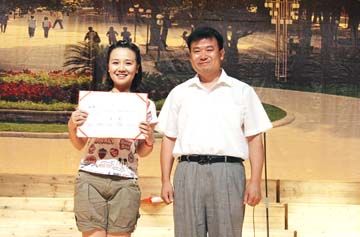 熊英部长(左一)、陆娟娟处长(右一)为三等奖获得者颁奖