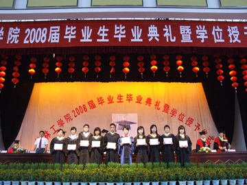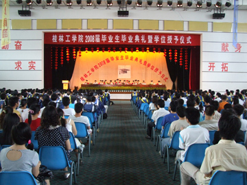6月24日上午,我院2008届毕业生毕业典礼暨学位授予仪式在体育馆三楼礼堂隆重举行。学院院长赵艳林,学院党委副书记、纪委书记赵君,学院副院长李祥清,学院党委委员、院长助理、人事处处长华桂林,院长助理、土木系主任陈学军,研究生处、招生就业处、科技处、学工处等部门领导和学院学位委员会成员在主席台就座。学院党委副书记张学洪主持了毕业典礼暨学位授予仪式。 毕业典礼暨学位授予仪式在庄严雄壮的国歌乐曲中开始。赵君副书记宣读了《关于表彰2008年度全区普通高等教育优秀大学毕业生的决定》和《关于表彰2008年度学院优秀大学毕业生的决定》,李祥清副院长宣读了2008年我院志愿服务西部计划学生名单。随后,在主席台前排就座的领导为优秀大学毕业生代表和2008年我院志愿服务西部计划学生进行了颁奖。学院学位委员会秘书长、研究生部主任刘康怀宣读了2008年毕业生毕业资格、学位授予情况审查报告。材化系张先来同学代表2008届毕业生作了发言,表示将会永远牢记母校的教诲和嘱托,努力为社会做出自己应有的贡献,为母校争光。 赵艳林院长发表了讲话。他首先代表学院党委、学院行政向全体毕业生致以最热烈的祝贺,也向为同学们的成长倾注无数心血和汗水的老师们表示深深的敬意和衷心的感谢,并向同学们提出了几点希望: 第一,要勤奋工作,爱岗敬业,报效祖国,奉献社会。 要发扬“艰苦创业、敬业奉献、团结协作、开拓创新”的桂工精神,干一行爱一行,在平凡的工作岗位上建功立业,把自己的理想追求和人生价值融入到祖国和人民的伟大事业中去,创造无愧于祖国,无愧于人民的业绩,用青春和智慧书写人生最壮丽的历史新篇章。 第二,要适应环境,转换角色,加强学习,提高能力。要迅速熟悉工作环境,了解工作性质,认清工作责任,迅速完成从学生到工作人员的转换,自觉地让自己去适应环境而不是让环境来适应自己。要牢记学习,学会学习,要活到老,学到老,因为只有不断的学习,才能站在时代的潮头,才能以良好的姿态接受未来的挑战;也只有学习,才能找到更好的工作方法,才能比别人取得更大的成就。 第三,要加强修养,提高品德,严于律己,相信自我。要通过不断加强修养和提高品德,努力做到与环境和谐、与人和谐、与社会和谐,为事业的成功营造良好的条件与氛围。 赵艳林院长指出,学院当前正在为实现“两申”目标、努力创建高水平大学而努力奋斗,这是时代赋予我们的庄严使命,也是学院振兴发展的必然选择。学院的建设发展固然要靠在校师生员工的艰苦奋斗,同时也离不开社会各界,特别是校友们的关心、支持和帮助。他说,“桂林工学院的每一点发展和进步,都饱含着校友们的心血和汗水。过去、现在是这样,将来更将如此。希望同学们在离开学校之后,无论走到哪里,都要继续关心、支持桂工,为桂工的建设和发展出谋划策。同时,同学们走出校门之后,桂林工学院作为你们的母校,她也会永远象母亲一样支持你、培育你、思念你、欢迎你。同学们在这里度过了美好的大学生活,这里就是你们的人生驿站,母校永远做你们的坚强后盾,桂工永远是你们的家!” 最后,进行了学位授予仪式,学院院长、学院学位评定委员会主席赵艳林教授分别向学士学位获得者代表和全体硕士学位获得者授予学位、颁发证书。 据悉,在我院2008届4526名毕业生中,有1019名同学光荣地加入了中国共产党;有8名同学参加西部服务计划;有152名同学被浙江大学、同济大学和中国科学院等大学或科研院所录取为硕士研究生;有24名硕士研究生被同济大学等高校录取为博士研究生;有52名同学获得自治区级优秀大学毕业生称号,有277名同学获得校级优秀大学毕业生称号。