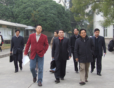检查调研组检查校园环境(前排左一为张学洪、左二为蒋瀚洲)